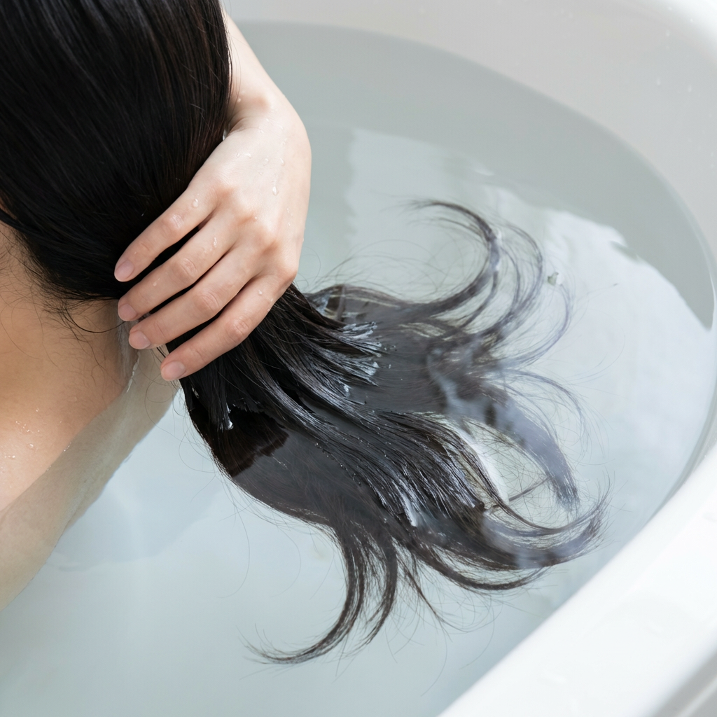 湯気とお湯にふわっと包まれる時間が、髪と全身のうるおいケア時間に。毎日の入浴を、“浸かるだけ”の新しいヘアケア習慣としてお楽しみください。