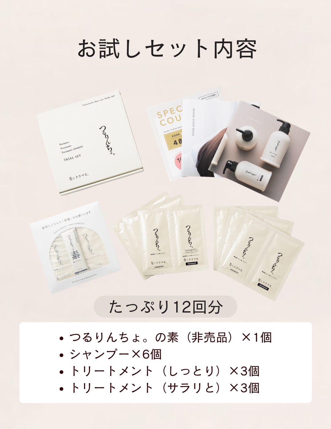 つるりんちょ。トライアルセット(リセットケア+シャンプー+2種類のトリートメント)(約12回分)